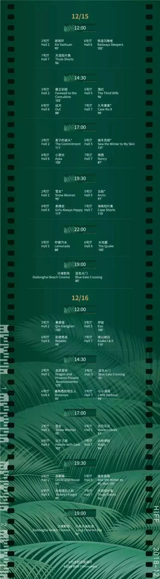 《北极》电影海报 “国际影展”环节将有超过30个国家和地区的近百部电影佳作参与展映,其中不乏多部在国际电影节获奖的影片。还有3部影片在三亚进行全球首映,还设有8个展映单元影片。 8个展映单元影片 “海角国际单元” “天涯国际单元” “采珠-中国年度电影单元” “拾贝-世界优秀电影单元” “京剧电影单元” “VR电影单元” “沉默之声默片现场配乐单元” “海南新力量单元” 其中“海角国际单元”展映来自东亚、东南亚海岛地区、非洲地区、印度半岛等地区多元文化的优秀影片,为观众展示一幅世界沿海电影版图。“天涯国际单元”以北方电影为主,主要选择极地地区的北欧、俄罗斯、加拿大影片。